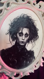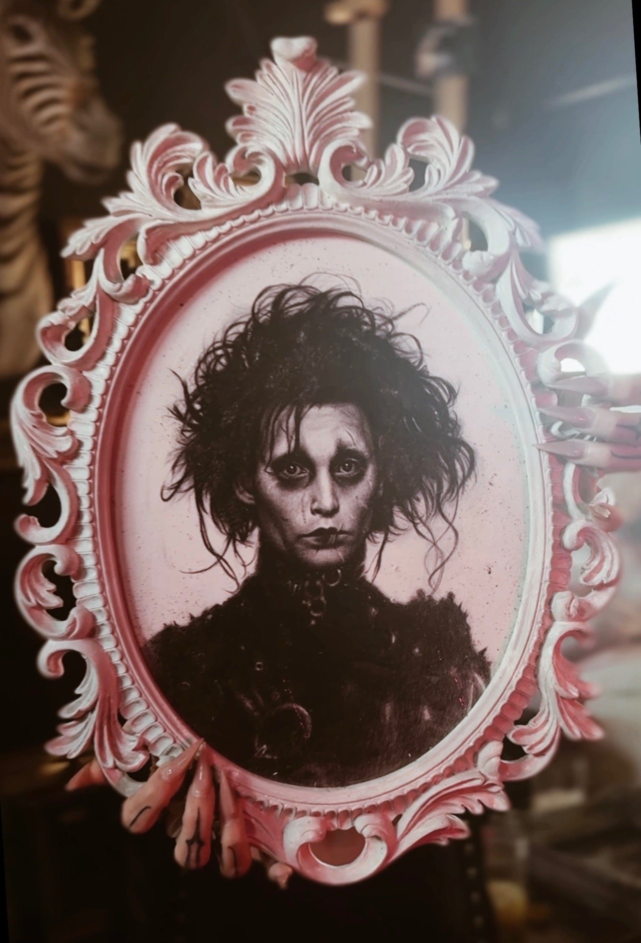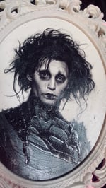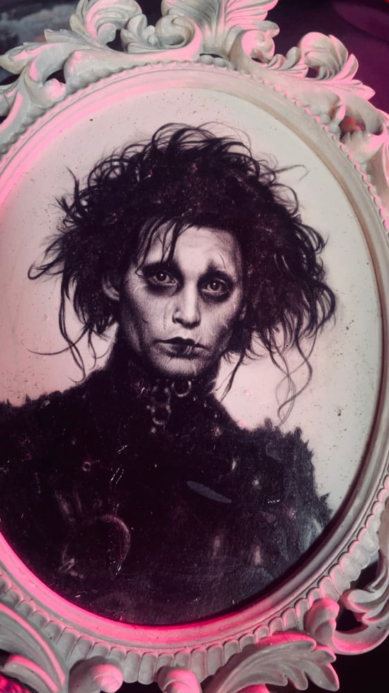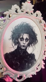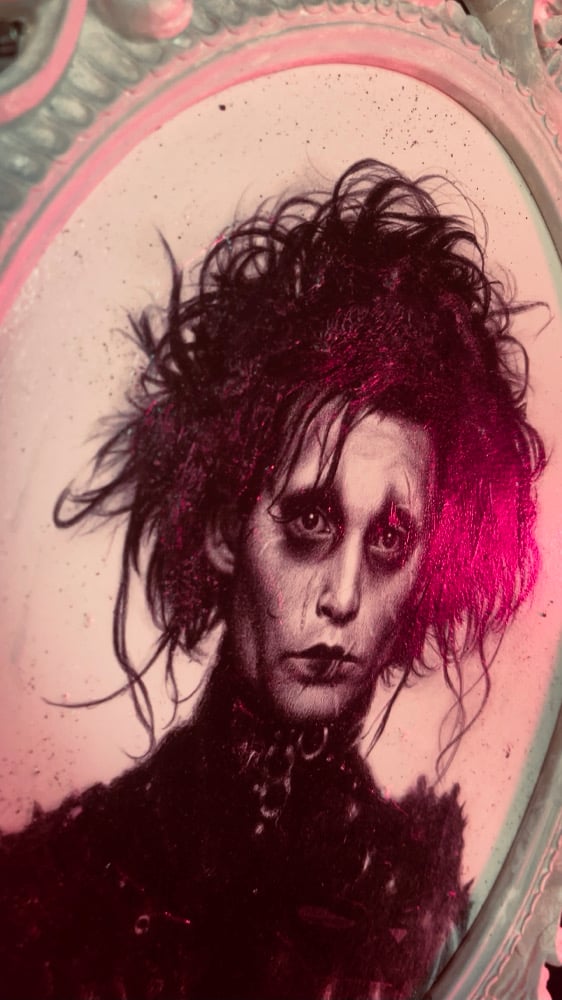 ‘EDWARD SCISSORHANDS’ [ Unique Print - { 1/1 } ] This is the very first Hand Embellished Museum Archival Print of Edward that I’ve ever created. Featuring mixed media on paper in a hand painted frame, it is the only one in existence, is not a series, and is available right now. Enjoy complimentary shipping worldwide.่'EDWARD SCISSORHANDS'Hand Embellished Print[ Unique Print - { 1/1 } ]Mixed Media on paper12 x 9.5 in18 x 13 in | outside dim.