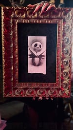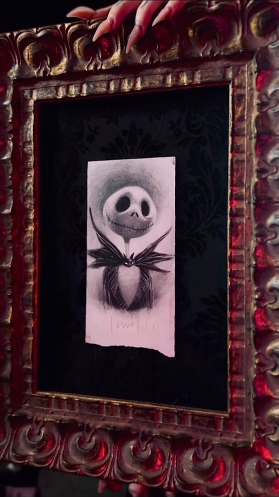 "Happy Halloween!!! 🕯🎃🦇 This original drawing is AVAILABLE for sale for the first time ever! Originally released as a Limited Edition print on Christmas Day of 2014, the artwork is mounted on the actual wallpaper taken from my studio at The Roosevelt in Los Angeles. This piece was also featured in my solo exhibition ’THE DEVIL’S VALENTINE’ at The Butler Institute of American Art — it still has the display card from the museum on the back! Framed in a carved wood frame with gold embellishments, this original drawing is now available via the link in my bio."
